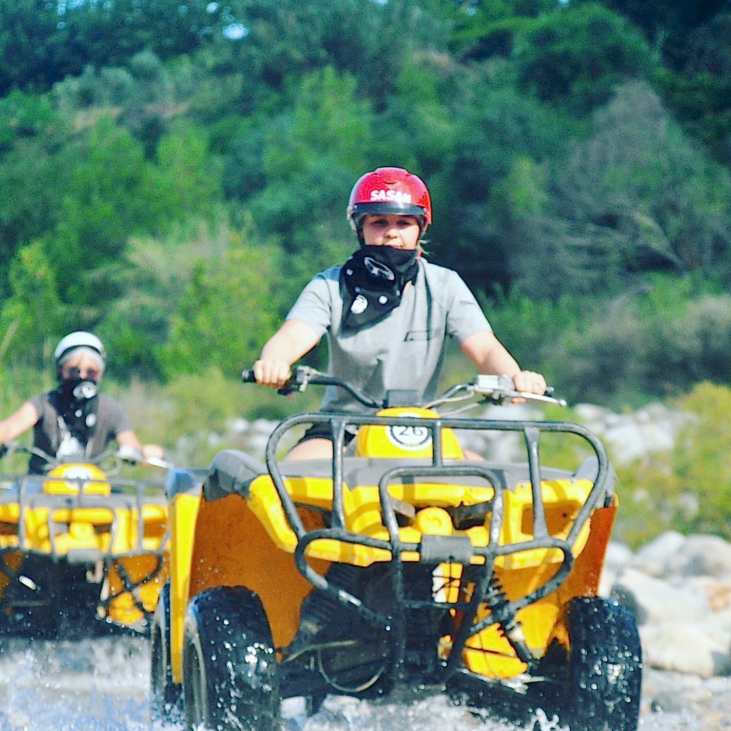 Antalya' nın gözde ilçesi Kemer' in doğa ile iç içe beldesi Göynük ' de bulunan ATV safari parkurumuz misafirlere yaklaşık 2 saat boyunca hem ormanda, hem meyve bahçeleri arasında, hem de buz gibi suyu ile ünlü Göynük Kanyonu' nun bir kolunda 4 tekerlekli off road motoru ile doyumsuz bir safari keyfi sunmaktadır. Siz de 2 saat boyunca ATV motorlar ile keşfe, doğaya ve yüzmeye doymak ister misiniz? Cevabınız EVET ise aşağıdaki tur programımıza bir göz atın ve rezervasyon için hemen bizimle iletişime geçin.