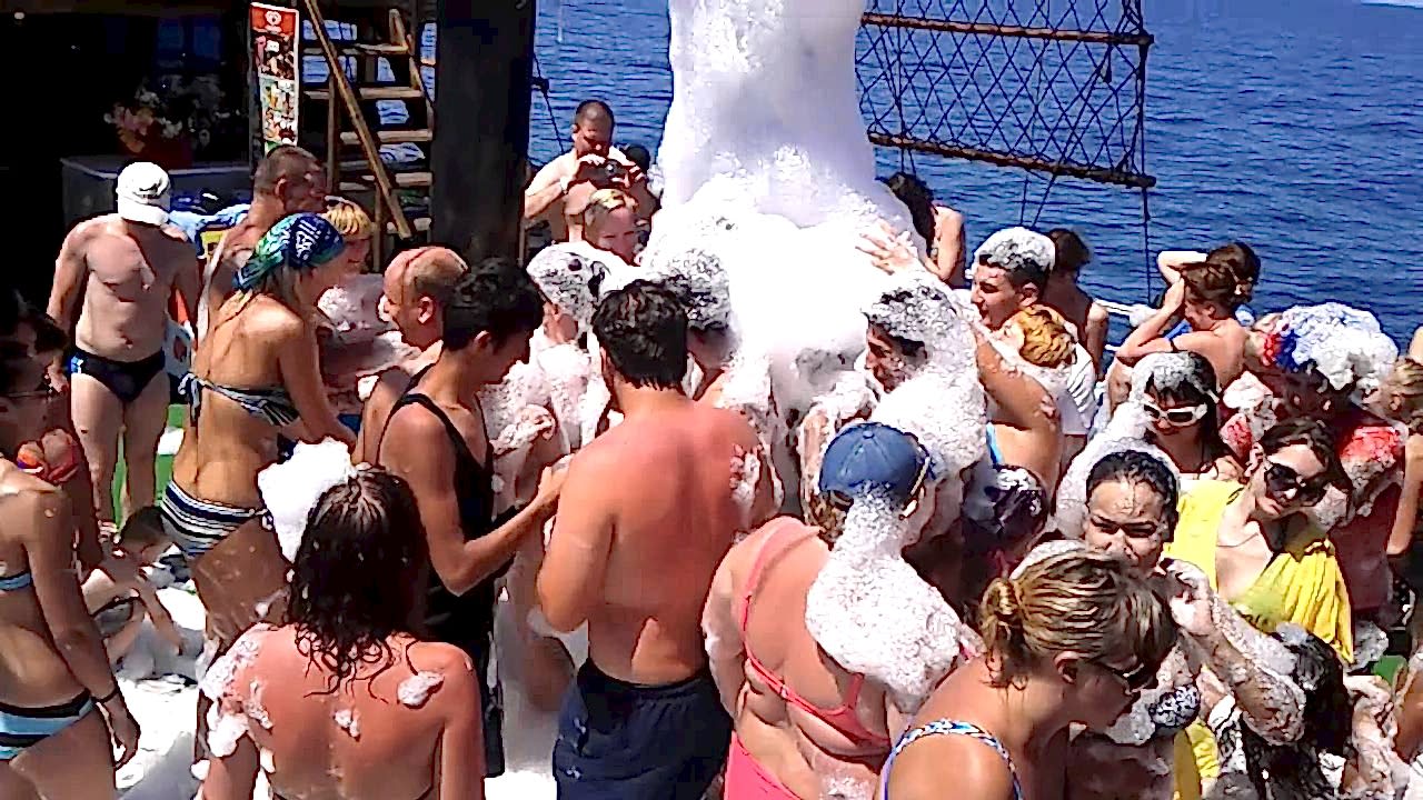 Köpük partili tekne ile tam gün yat turu ve öğle yemeği dahil.